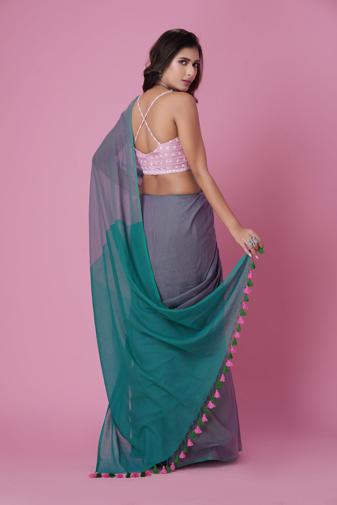 Mulmul saree for your summers and your daily style statement. It does not comes with blouse piece. It has a dual tone that give it a very unique color. Perfect for daily wear, office wear, as well as covers your festive wear.
