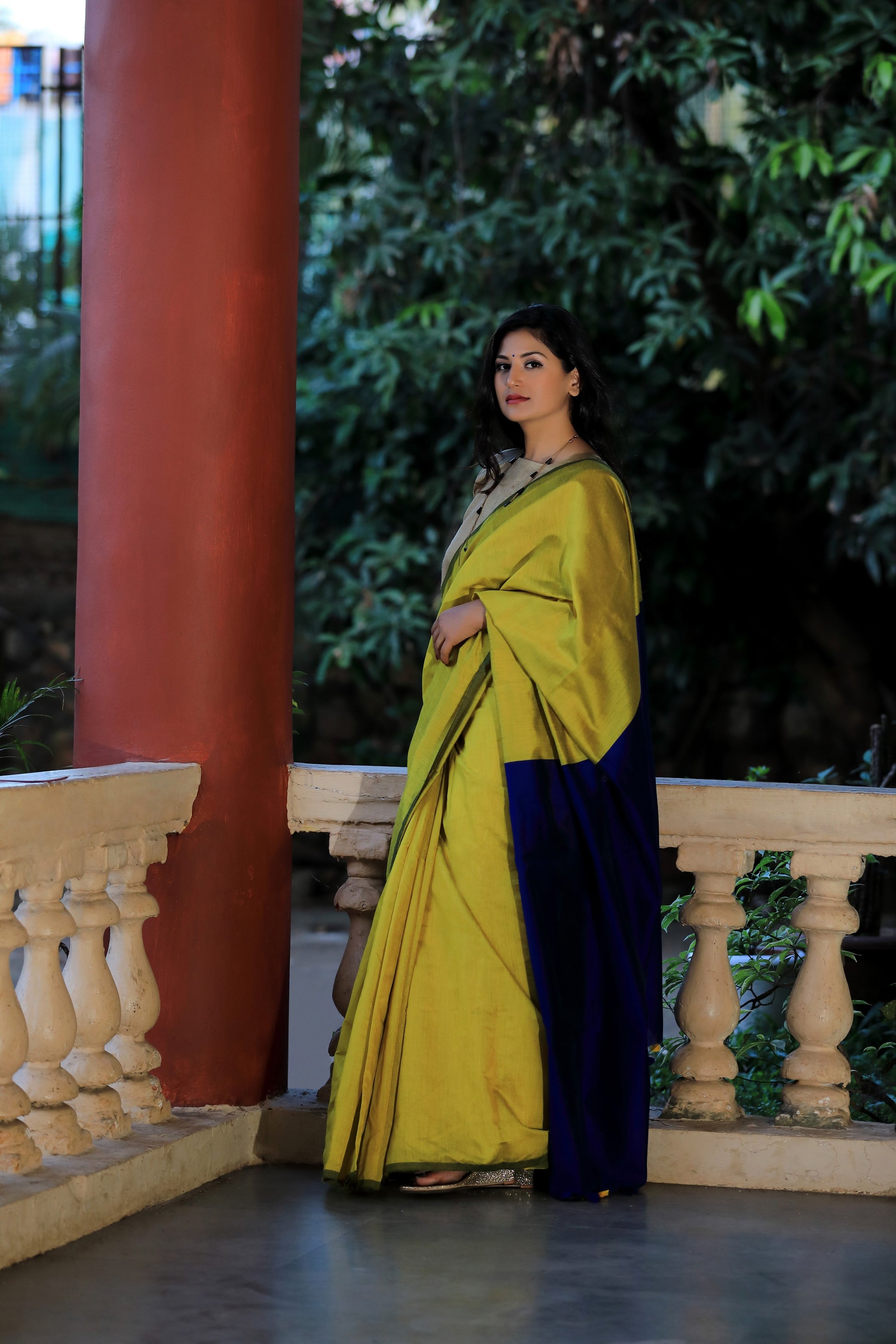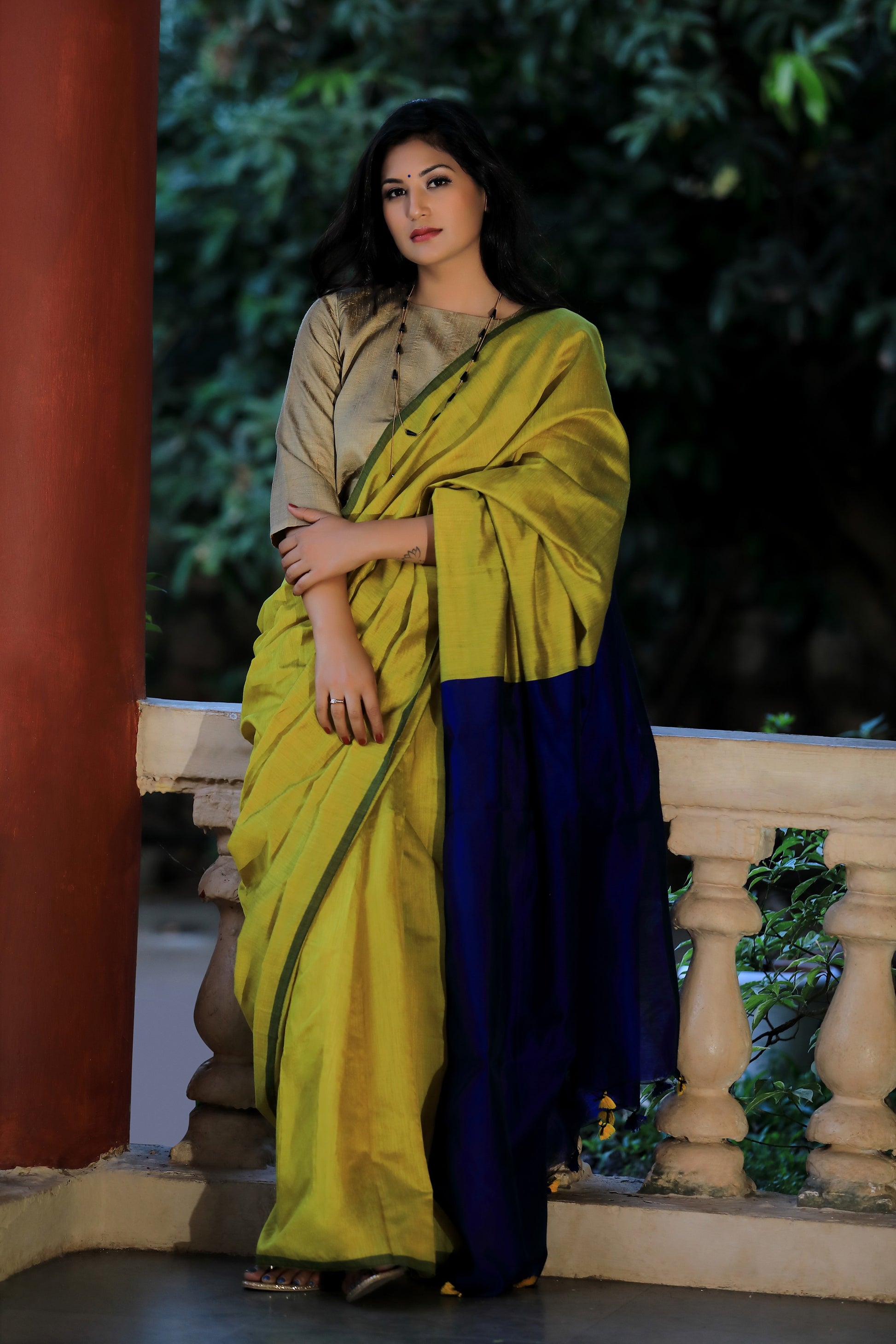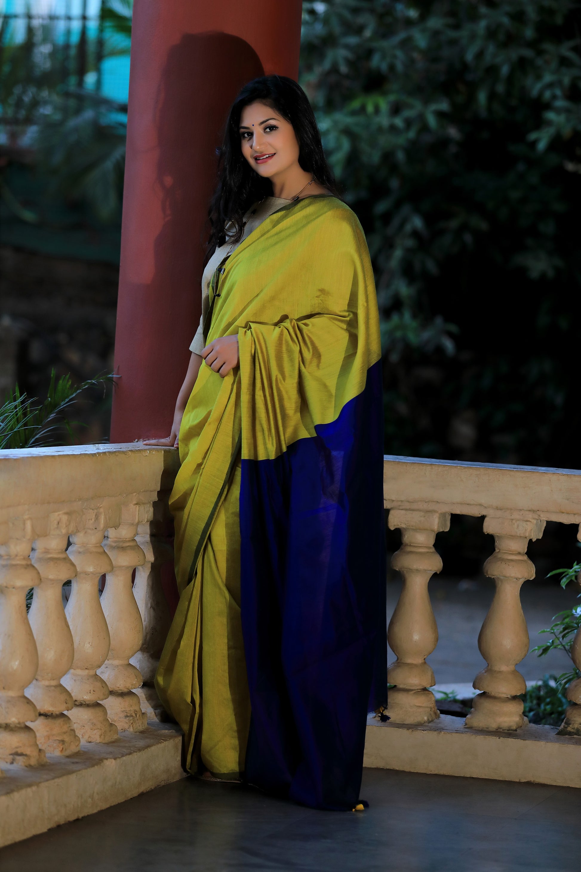 This molten gold and royal blue saree is the epitome of elegance and class. The fabric is soft and light weight making it fuss free. It has a beautiful sheen. Dazzle in this beautiful saree from Raaga silk tales. It comes with a running blouse piece.