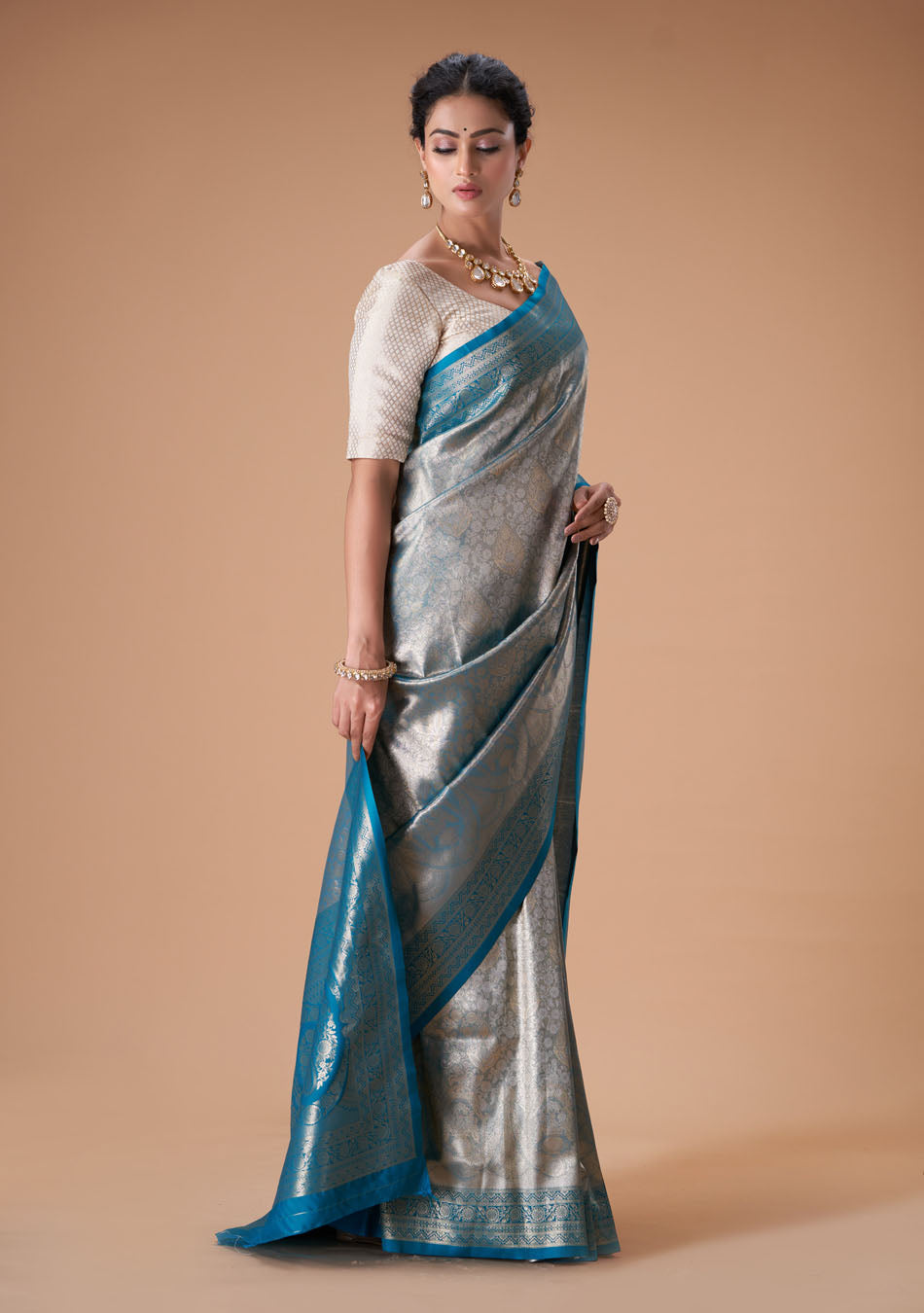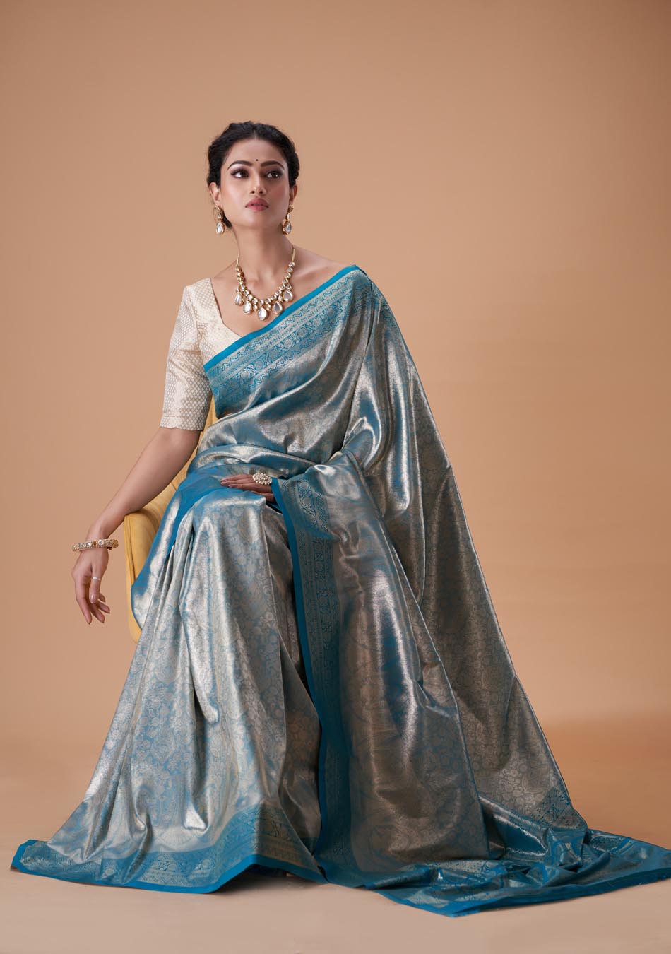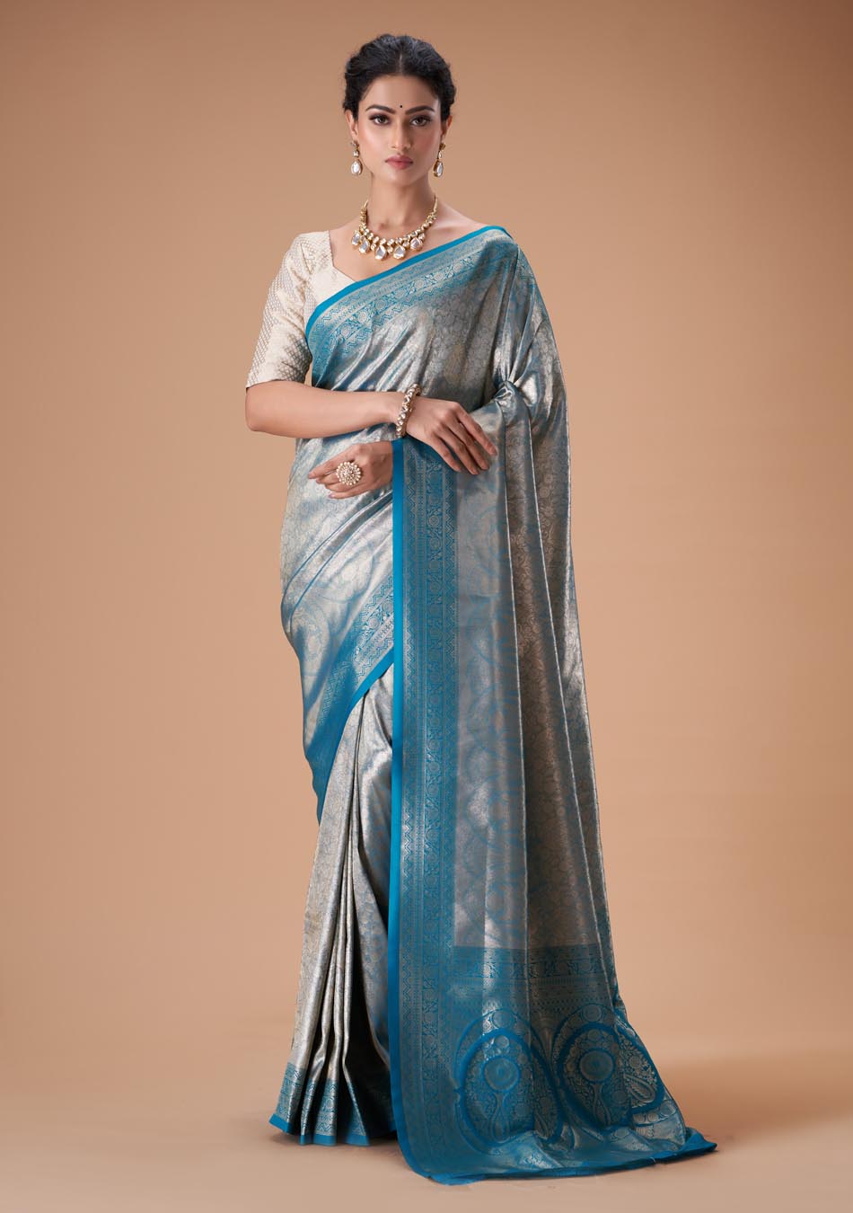 Get this beautiful Kanjivaram Saree online at Raaga Silk Tales - The best online store for kanjivaram silk sarees, assam silk sarees, banarasi silk sarees, organza sarees and linen sarees.