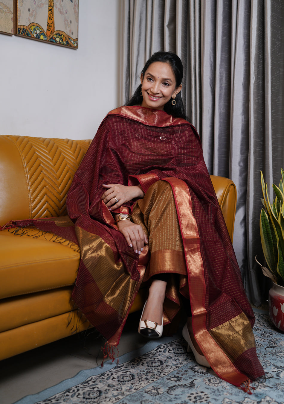 Brown and maroon Maheshwari Suit